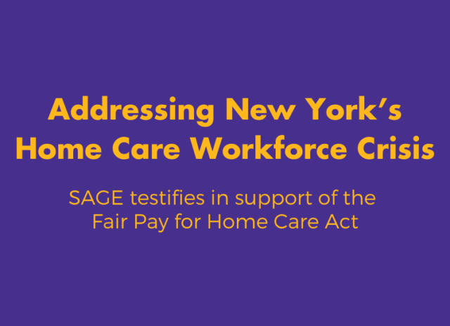 SAGE strongly supports Resolution 0024-2022 and The Fair Pay for Home Care Act (S.5374-A/A.6329-A) to address New York’s home care workforce crisis and help ensure LGBTQ+ elders can access the supports they need to age in place.
