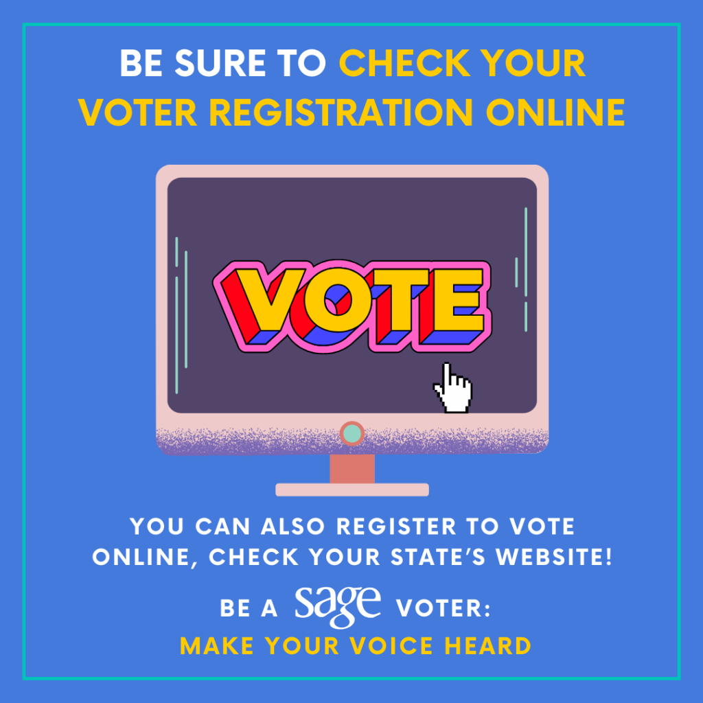 Not sure where to start? In partnership with AARP, we have prepared a helpful resource on how you can prepare yourself and your loved ones this election season. Check out SAGE’s Voter Guide for helpful information and important resources.