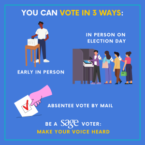 Want to share your support and inspire others to act? Amplify our resources and show off your support by sharing proudly that you are a SAGE Voter!