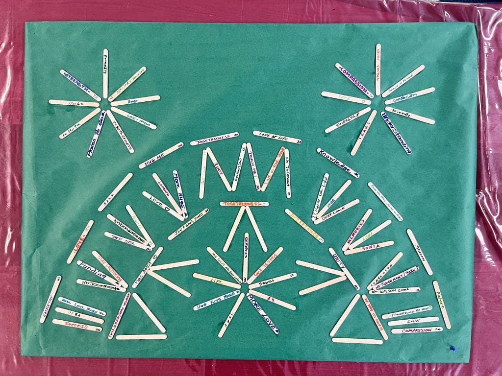 Over the following week, we held events at the SAGE Centers in Brooklyn, the Bronx, and Midtown. These events included a participant panel discussion, an art project (pictured below), and an erotic writing workshop. Each format provided a different opportunity for SAGE members to explore and express the impact of HIV/AIDS on their lives.