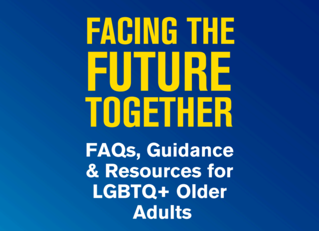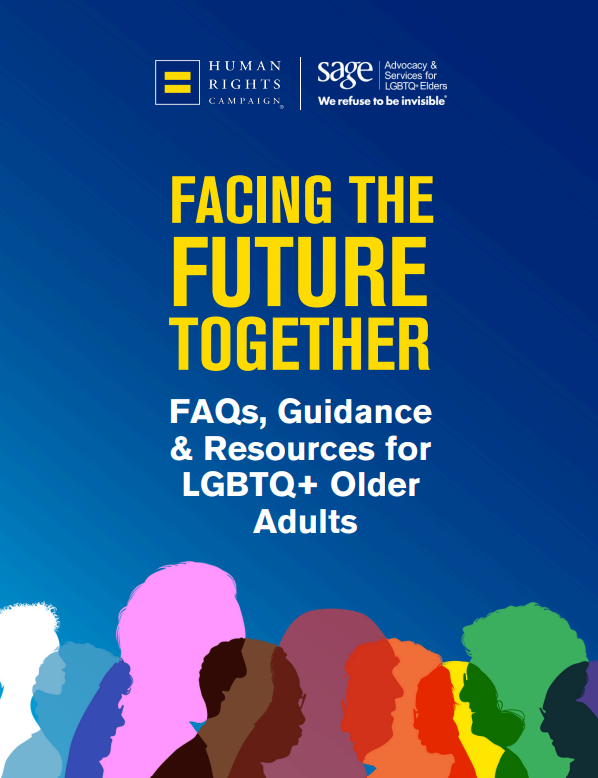 That’s why SAGE and the Human Rights Campaign Foundation partnered to produce Facing the Future Together: FAQ’s, Guidance & Resource for LGBTQ+ Older Adults. This guide acts as a safe, dependable hub filled with carefully vetted community, healthcare, financial, safety, and legal resources.