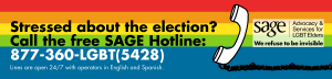 SAGE’s National LGBT Elder Hotline, 877-360-LGBT(5428)