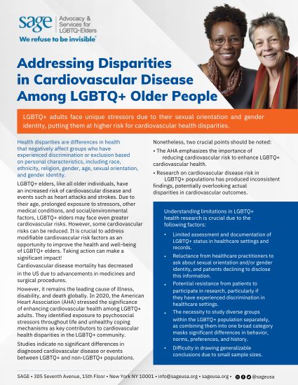 LGBTQ+ adults face unique stressors due to their sexual orientation and gender identity, putting them at higher risk for cardiovascular health disparities.