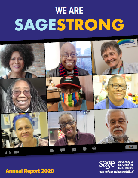 “Looking back on 2020, I’m brimming with pride at how SAGE’s staff, Board of Directors, volunteers, and supporters rose to the occasion in the face of emergencies that truly defied advance preparation. I’m particularly proud of our elders, who were at the epicenter of the COVID-19 pandemic throughout 2020 and yet still pushed forward. Even in the midst of health threats that have little precedent in terms of their scope and severity, our elders reminded us last spring that it was SAGE’s responsibility to step up to the plate and affirm that Black Lives Matter. They reminded us that words aren’t enough when it comes to battling white supremacy and advancing racial justice, pushing to ensure that SAGE’s supportive words are matched with impactful actions through our organization’s Diversity, Equity & Inclusion Initiative. They buttressed and led us to keep standing strong against the bigotry and ugliness of the Trump administration, even as we navigated a global public health crisis that hit so close to home. They put the wind in our sails when SAGE won the only bipartisan LGBT congressional victory of the Trump era—amending the Older Americans Act to dramatically expand the opportunities for LGBT older people to access federally-funded elder services across the country. This is what SAGEStrong looks like. It’s the way our elders taught us to live, to be.”