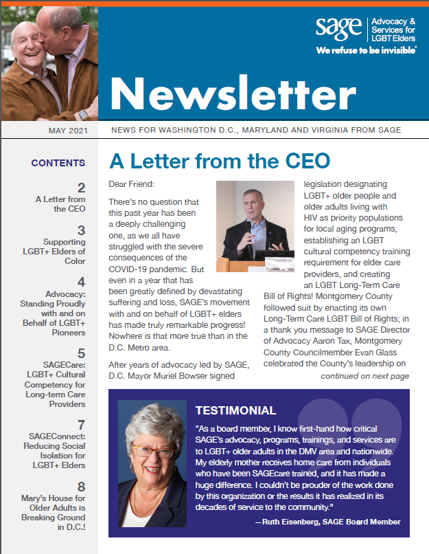 Get the latest news and announcements pertaining to LGBT elders and SAGE’s work in Washington, D.C., Maryland, and Virginia.