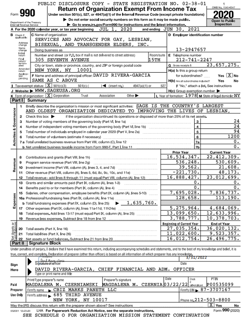 PDF Download SAGE: FY 21 990 April 1, 2022 | SAGE View PDF View PDF Download to view SAGE’s public disclosure statement. Share Facebook LinkedIn Email Copy Link