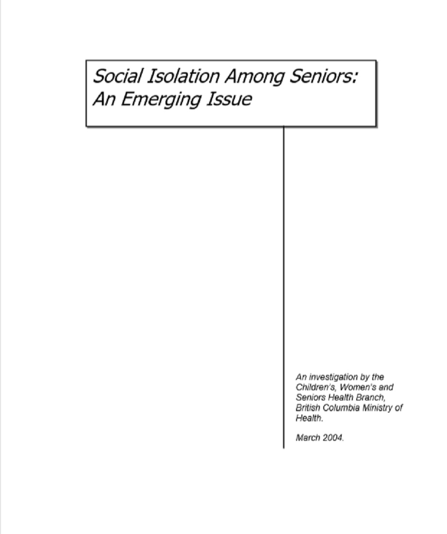 Social integration and participation of older adults in society are frequently seen as indicators of productive and healthy aging and it is widely accepted that social support has a strong protective effect on health. However, an increasing amount of seniors may be at risk of being socially isolated or lonely. This may be due to a number of factors such as increased likelihood of living alone, death of family members or friends, retirement or poor health. With current trends such as encouraging seniors to live longer at home or in the community, a highly mobile society and fewer children per family, the issue of social isolation takes on a new importance.